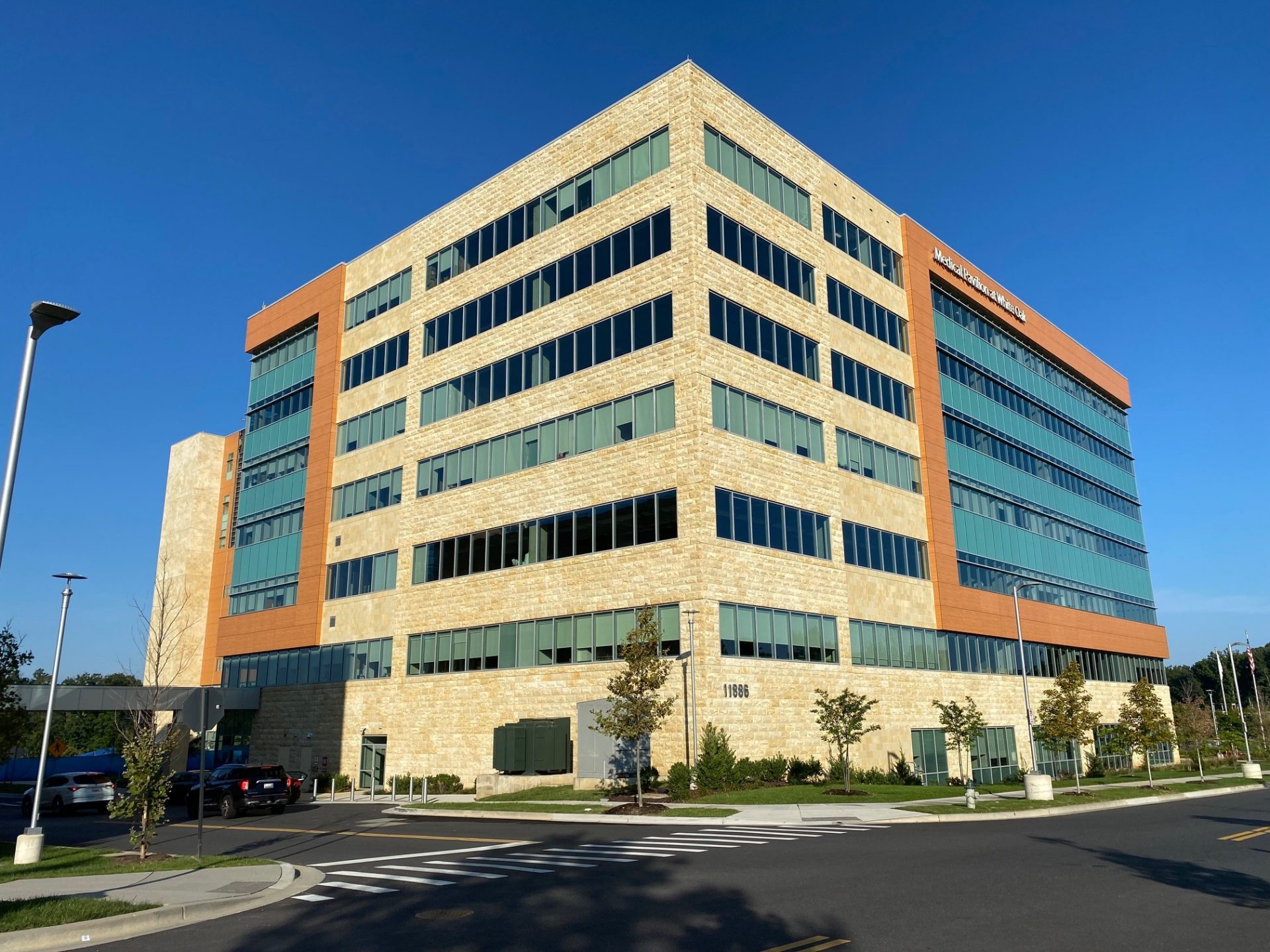 Adventist HealthCare White Oak Medical Center has been part of the community for 115 years, first in Takoma Park and now in its state-of-the-art facility in White Oak. This new facility, which opened its doors in 2019, conveys a human-centric design that places patients at the center of the healthcare equation. The exterior masonry work brings strength and warmth with orange and tan hues of the striated and rocked stone pieces. The stone meshes perfectly with the glass and umber-colored textured wood panels. For this project, Potomac Valley Brick supplied stone from Arriscraft.