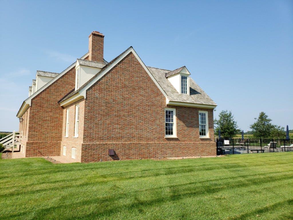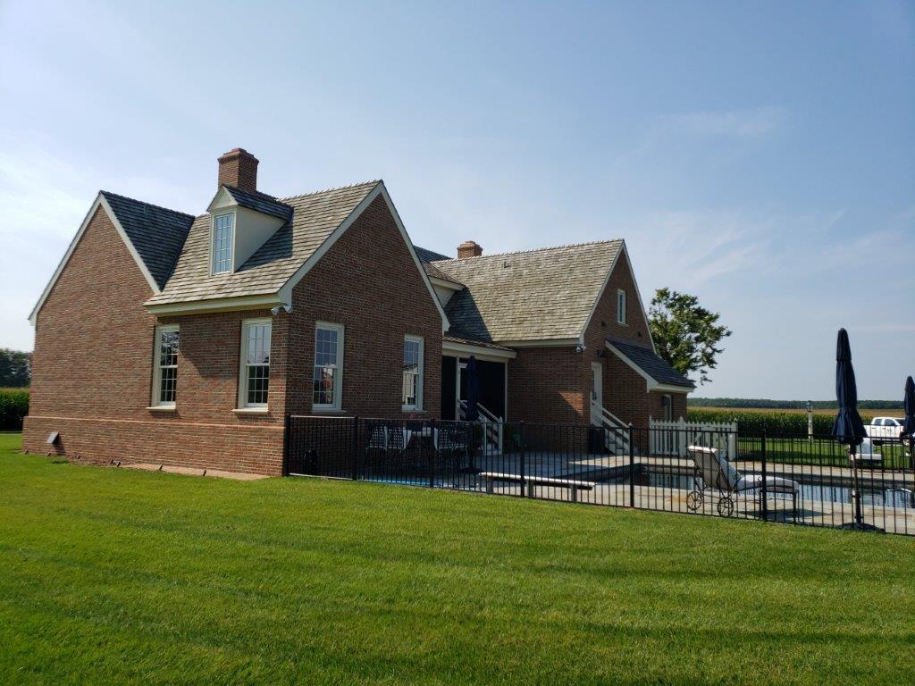 This stunning traditional farmhouse in Cambridge, MD showcases Belden 560 Modular bricks laid in a flemish bond pattern, with bullnose watertable stretchers and pavers, all brought together with Flamingo C-224 mortar. The incorporation of Bluestone Full Range Natural cleft adds a touch of timeless elegance to the home’s walkway and pool deck. This collaboration resulted in a remarkable farmhouse that perfectly blends craftsmanship, quality materials, and traditional charm.