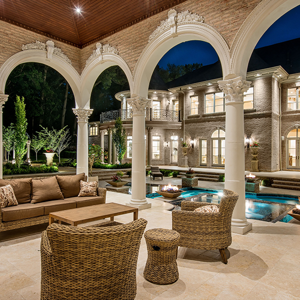 Potomac Valley Brick supplied all the exterior brick veneer on this magnificent home. The Redland Brick Cushwa Plant brick was used across the home’s exterior in addition to lining walls surrounding the private pool, grills/fire pits and outdoor cabana areas.