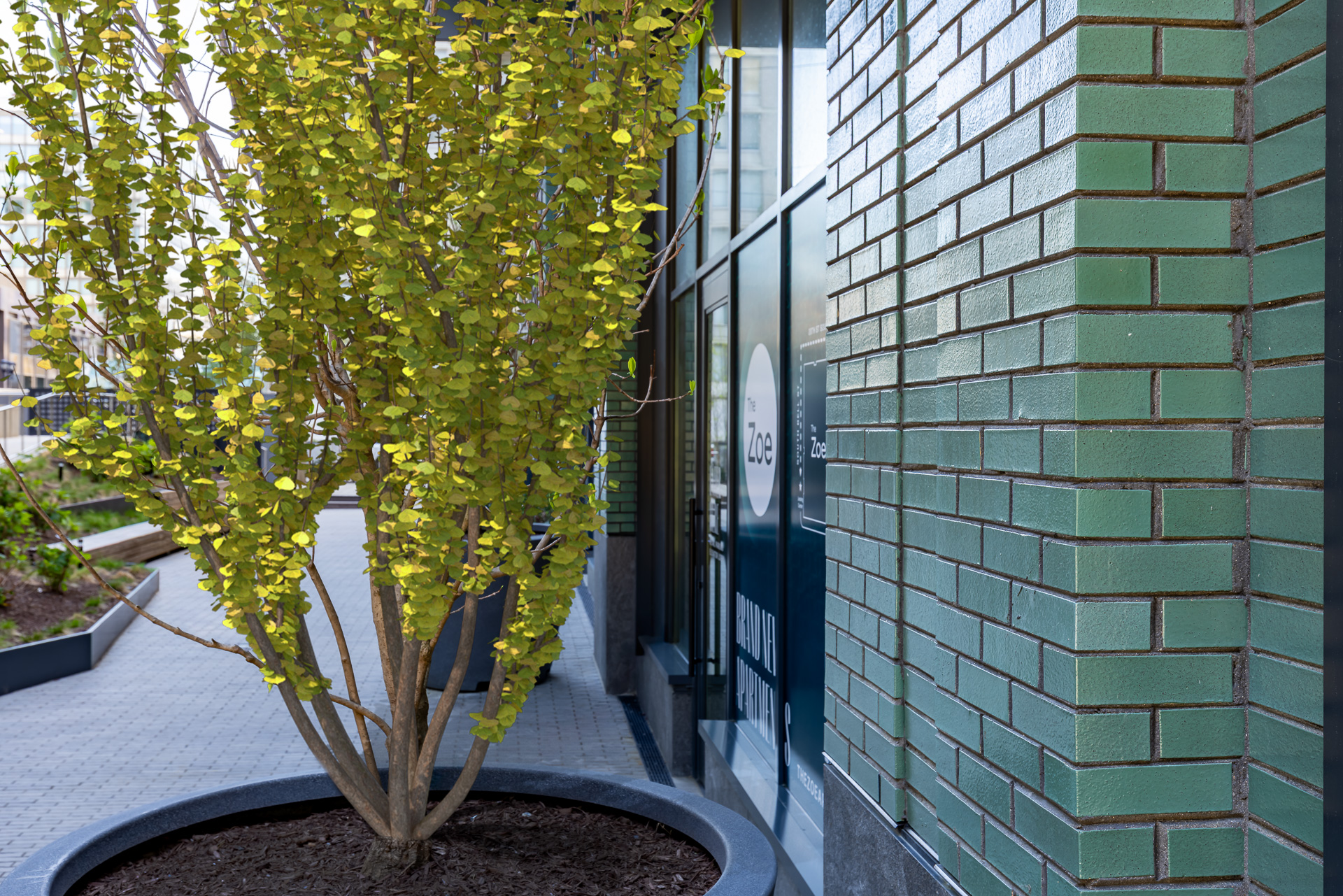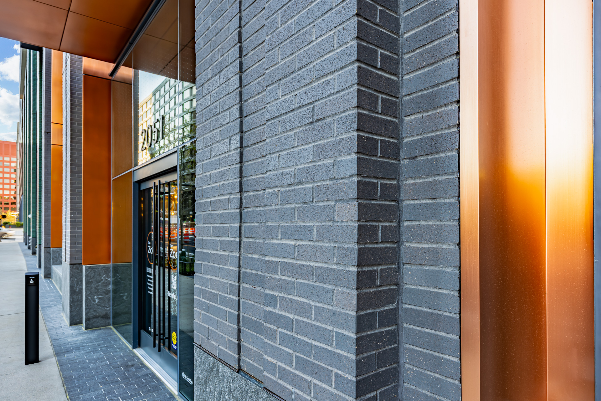 Located in Arlington’s vibrant National Landing district, The Zoe is a striking 19-story residential tower with nearly 400 apartment units across approximately 360,000 square feet. Designed to emphasize architectural diversity, the building’s façade showcases a dynamic mixture of form, texture, and color. Using a Green Glazed brick with Speck and Titanium Gray brick in Modular, Norman, and Double Monarch sizes from The Belden Brick Company and supplied by Potomac Valley Brick, the building evokes a bold, contemporary statement that complements the surrounding urban location while introducing a distinctive visual identity to the neighborhood.